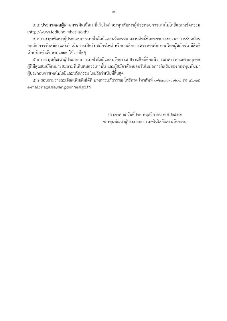 ตั้งแต่วันที่ 26 พฤศจิกายน - 9 ธันวาคม 2562 ระหว่างเวลา 8.30 - 16.30 น. (เว้นวันหยุดราชการ) ผู้สนใจสามารถสอบถามข้อมูลเพิ่มเติมได้ที่ นางสาวนภัสวรรณ โพธิภาค หมายเลขโทรศัพท์ 0 2333 3700 - 5 ต่อ 4074 ในวันและเวลาราชการ (ระหว่างเวลา 8.30 - 16.30 น.) หรือ e-mail: This email address is being protected from spambots. You need JavaScript enabled to view it.