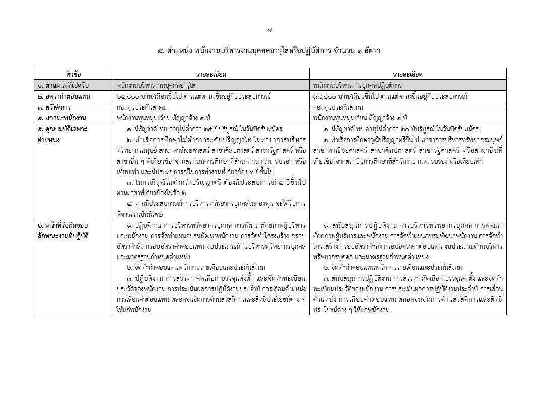 - พนักงานบริหารงานบุคคลอาวุโสหรือปฏิบัติการ จำนวน 1 อัตรา