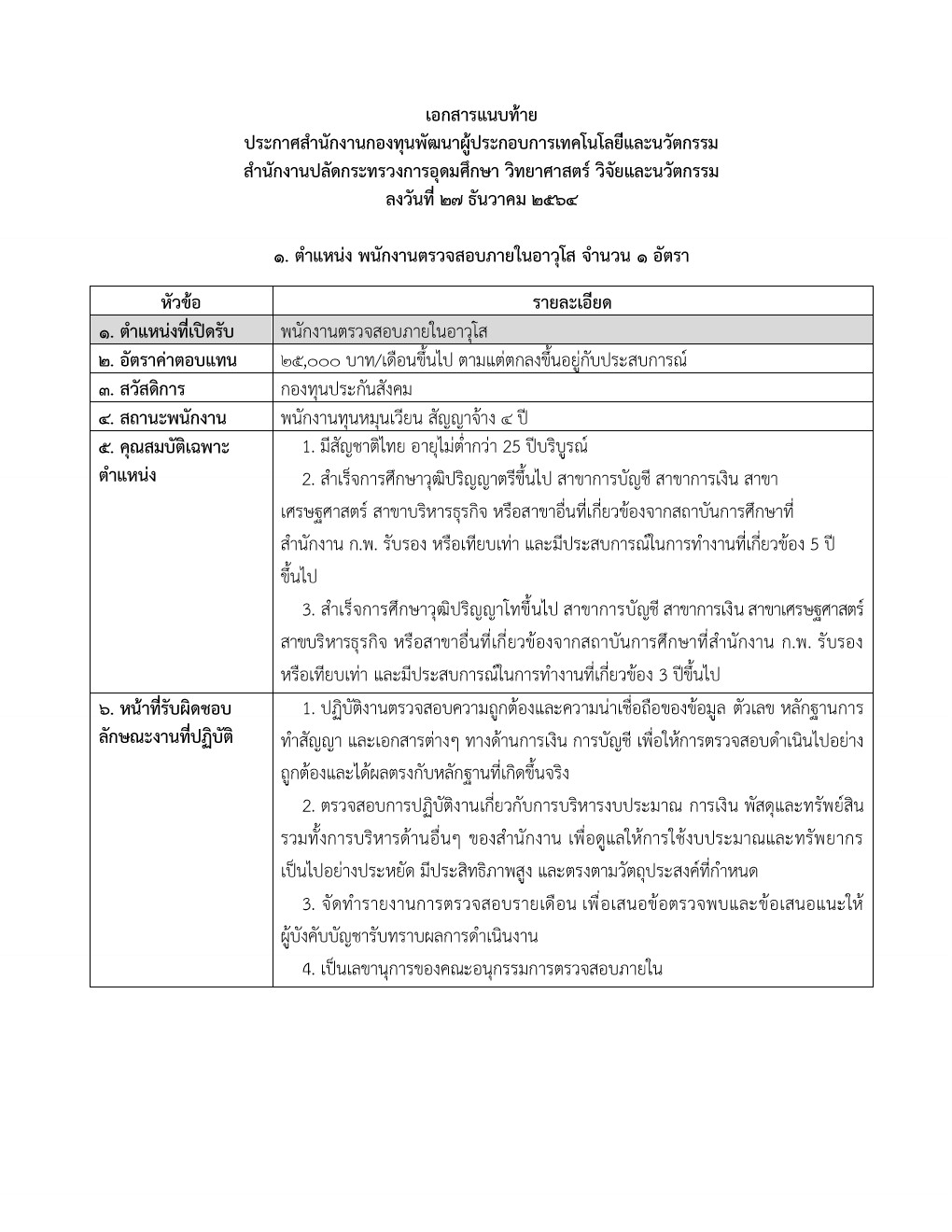 - พนักงานตรวจสอบภายในอาวุโส จำนวน 1 อัตรา