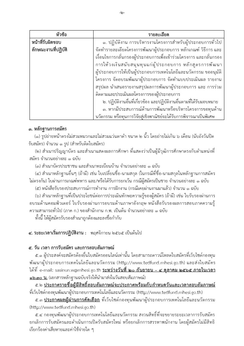 ตั้งแต่วันที่ 20 กันยายน - 4 ตุลาคม 2565 ภายใน 16.30 น. ผู้สนใจสามารถสอบถามข้อมูลเพิ่มเติมได้ที่ นางสาวศศินันท์ วงษ์อนันต์ หมายเลขโทรศัพท์ 0 2333 3700 ต่อ 4074 ในวันและเวลาราชการ (ระหว่างเวลา 8.30 - 16.30 น.) หรือ e-mail: This email address is being protected from spambots. You need JavaScript enabled to view it.
