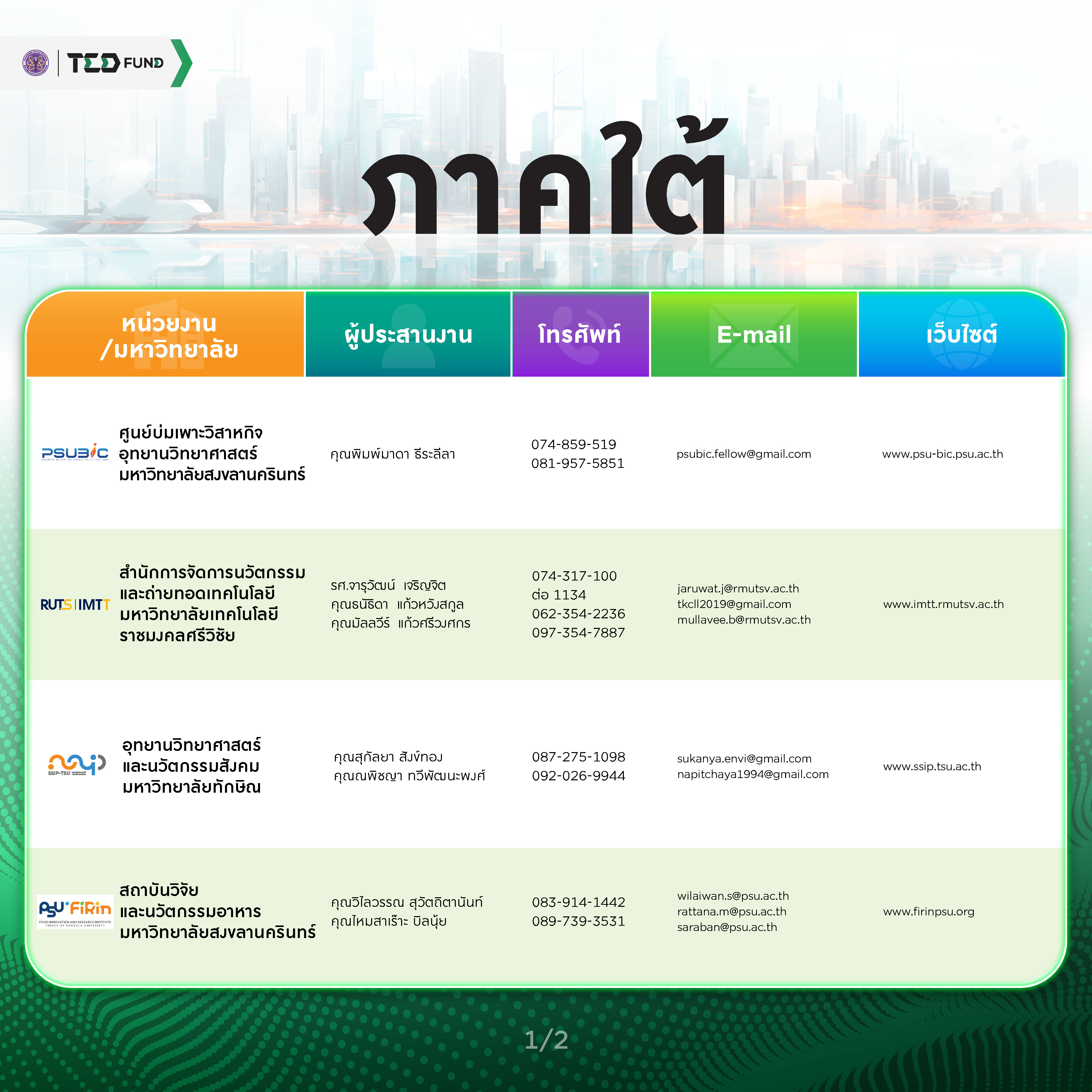 1. ศูนย์บ่มเพาะวิสาหกิจ อุทยานวิทยาศาสตร์ มหาวิทยาลัยสงขลานครินทร์