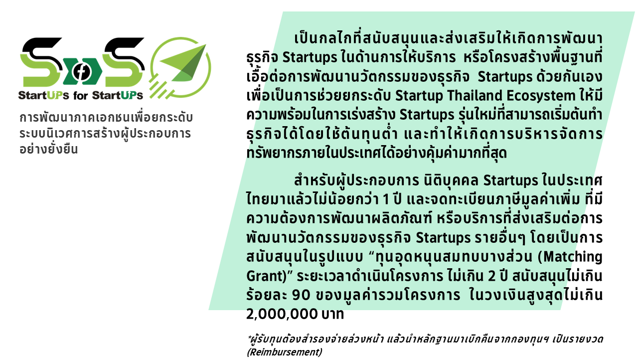 - การพัฒนาภาคเอกชนเพื่อการยกระดับระบบนิเวศการสร้างผู้ประกอบการอย่างยั่งยืน (Startups for Startups)