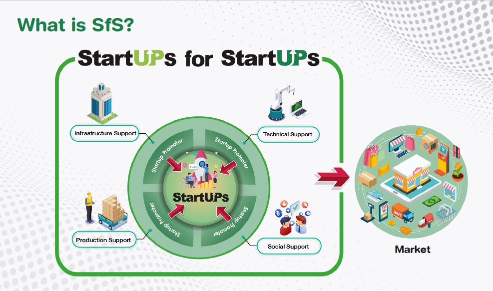 โครงการ Startups for Startups มีเป้าหมายในการพัฒนาให้เกิดระบบนิเวศการสร้างผู้ประกอบการที่มีการเติบโตอย่างยั่งยืน ส่งเสริมการมีบทบาทของภาคเอกชนในรูปแบบของ Product/Service Providers เพื่อเป็น “Startup Promoter” ซึ่งจะเป็นทางเลือกให้แก่ผู้ประกอบการธุรกิจเทคโนโลยีและนวัตกรรมรายใหม่ในการเข้าใช้บริการ ดังนั้น โครงการฯ จึงถูกออกแบบเพื่อส่งเสริมการสร้างผู้ประกอบการรายใหม่ที่มีวัตถุประสงค์ของการทำธุรกิจเพื่อสนับสนุนการเติบโตของผู้ประกอบการฐานวิทยาศาสตร์วิจัยและนวัตกรรมรายอื่นในด้านต่างๆ เช่น การทำวิจัยและพัฒนา การบริหารจัดการทรัพย์สินทางปัญญา ระบบเทคโนโลยีสารสนเทศ การวิเคราะห์ตลาดและความต้องการของผู้บริโภค ระบบการเงินและบัญชี กฎหมายที่เกี่ยวข้อง ฯลฯ