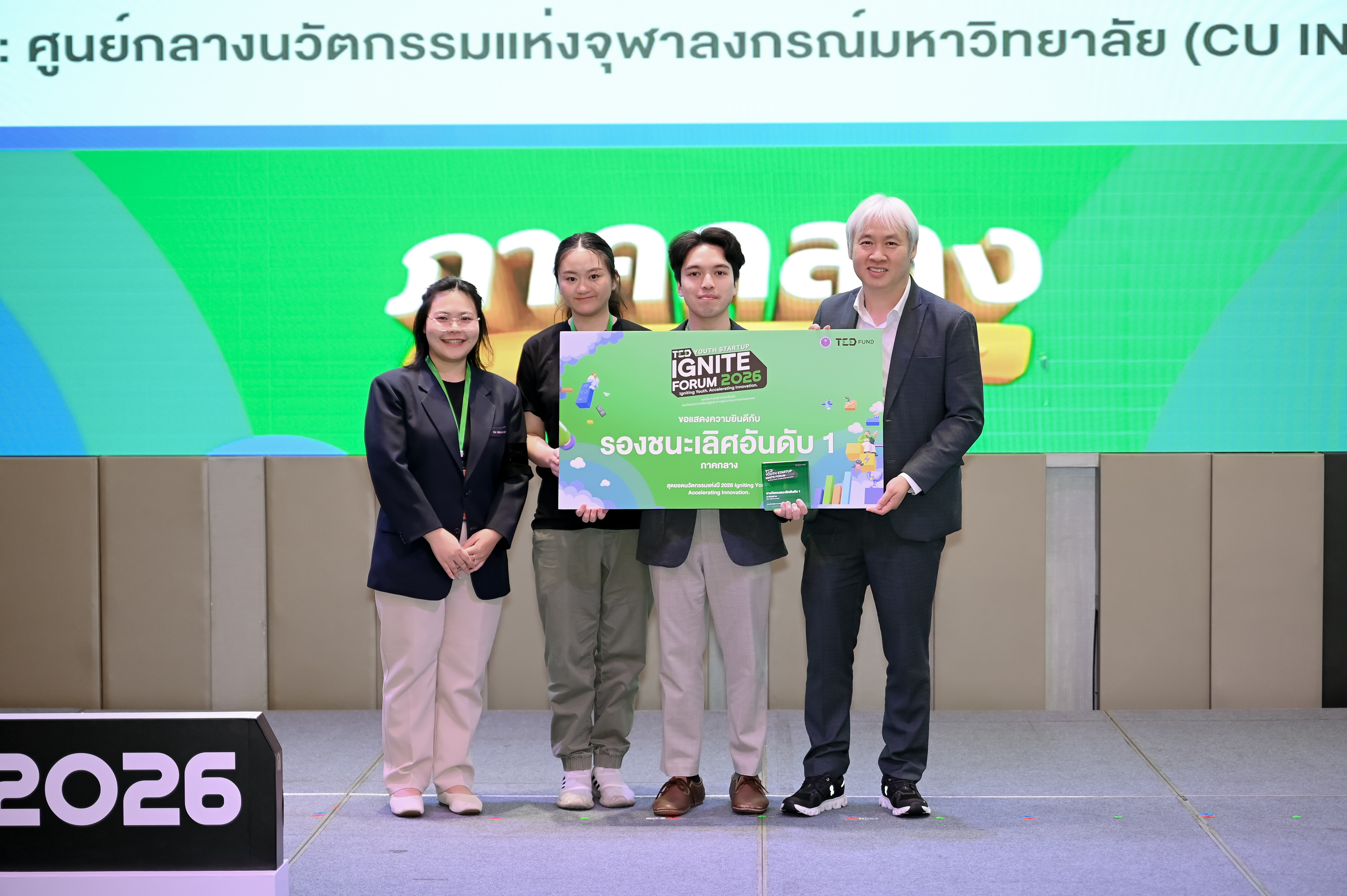TED Youth Startup – IGNITE Forum 2026 จึงถูกสร้างขึ้นเพื่อเป็นเวทีสำคัญในการจุดประกายไอเดีย เชื่อมโยงองค์ความรู้ และผลักดันให้เกิดการพัฒนาธุรกิจนวัตกรรมอย่างเป็นรูปธรรม พร้อมเปิดโอกาสให้เยาวชนและผู้ประกอบการรุ่นใหม่ ได้เข้าถึงแหล่งทุน เครือข่าย และประสบการณ์จริงจากผู้เชี่ยวชาญ เวทีนี้ไม่เพียงแค่ “สร้างแรงบันดาลใจ” แต่ยังเป็น “จุดเริ่มต้น” ของการเปลี่ยนไอเดียให้กลายเป็นธุรกิจที่สามารถเติบโตและแข่งขันได้ในอนาคต เพราะการลงทุนที่สำคัญที่สุด… คือการลงทุนใน “คน” และ “ความคิด” ที่จะขับเคลื่อนประเทศต่อไป อีกหนึ่งก้าวสำคัญของ “ไอเดียไทย” ที่ถูกต่อยอดสู่ “นวัตกรรมและธุรกิจจริง” ขอแสดงความยินดีกับทุกทีมผู้ชนะ ที่พิสูจน์แล้วว่าการลงมือทำ คือจุดเริ่มต้นของความเป็นไปได้