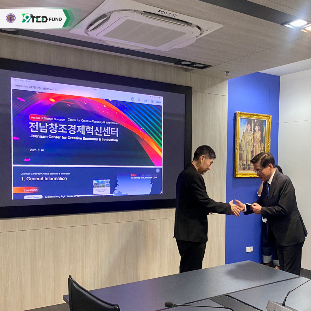 TED Fund เดินหน้าสร้างเครือข่าย TED Global Network หารือความร่วมมือกับ Jeonnam Center for Creative Economy & Innovation (CCEI) หน่วยงานสนับสนุนสตาร์ทอัพแห่งประเทศเกาหลีใต้ เพื่อสำรวจโอกาสความร่วมมือในอนาคตสนับสนุนผู้ประกอบการเทคโนโลยีและนวัตกรรมต่อยอดสู่การขยายตลาดต่างประเทศ