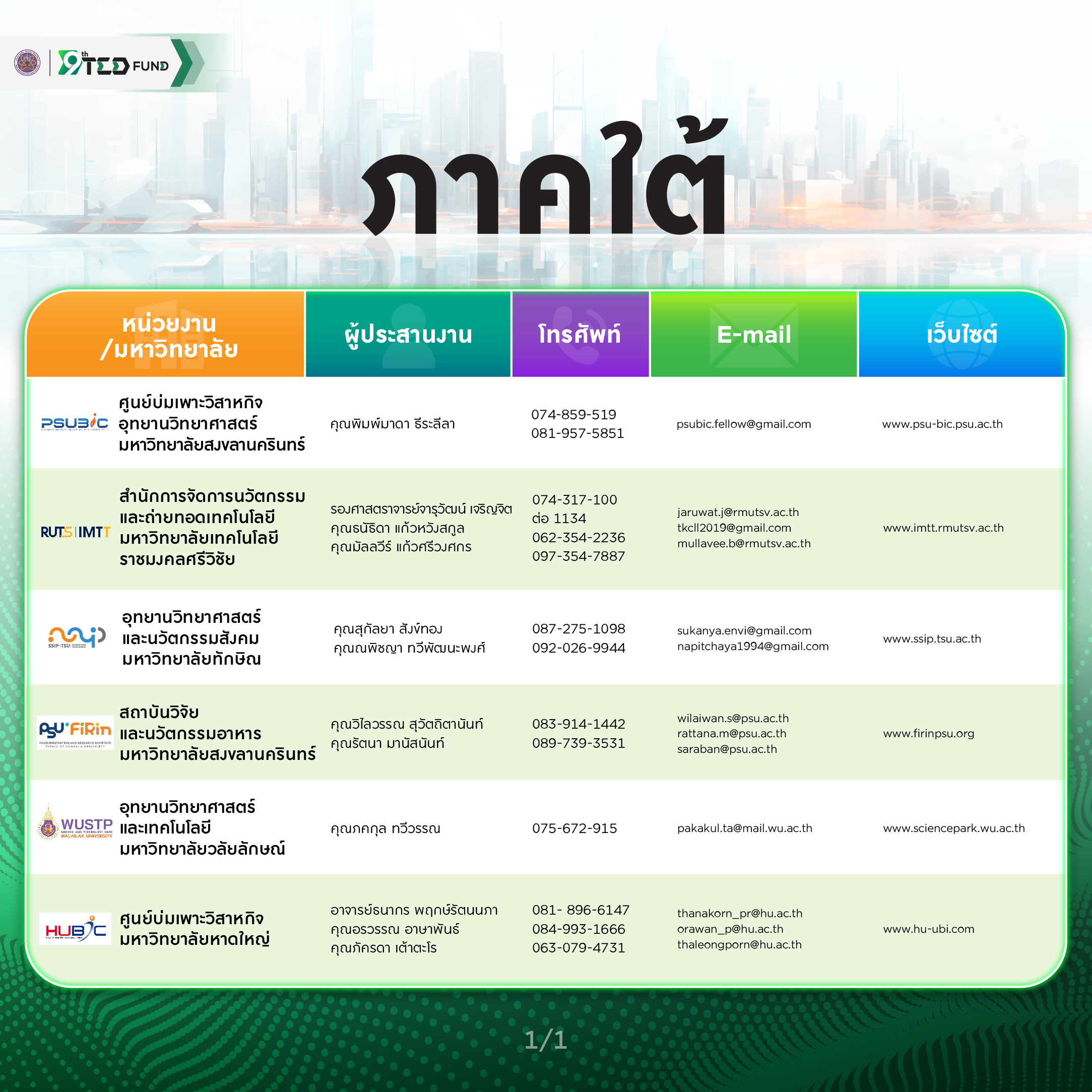 1. ศูนย์บ่มเพาะวิสาหกิจ อุทยานวิทยาศาสตร์ มหาวิทยาลัยสงขลานครินทร์
