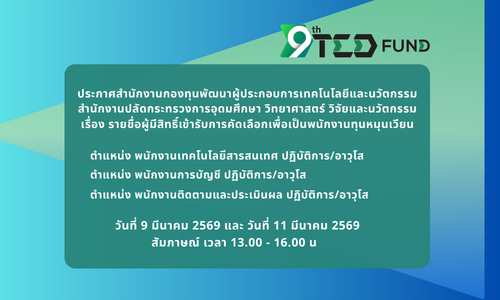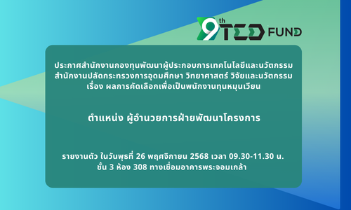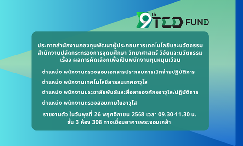 ที่อยู่ : กองทุนพัฒนาผู้ประกอบการเทคโนโลยีและนวัตกรรม
